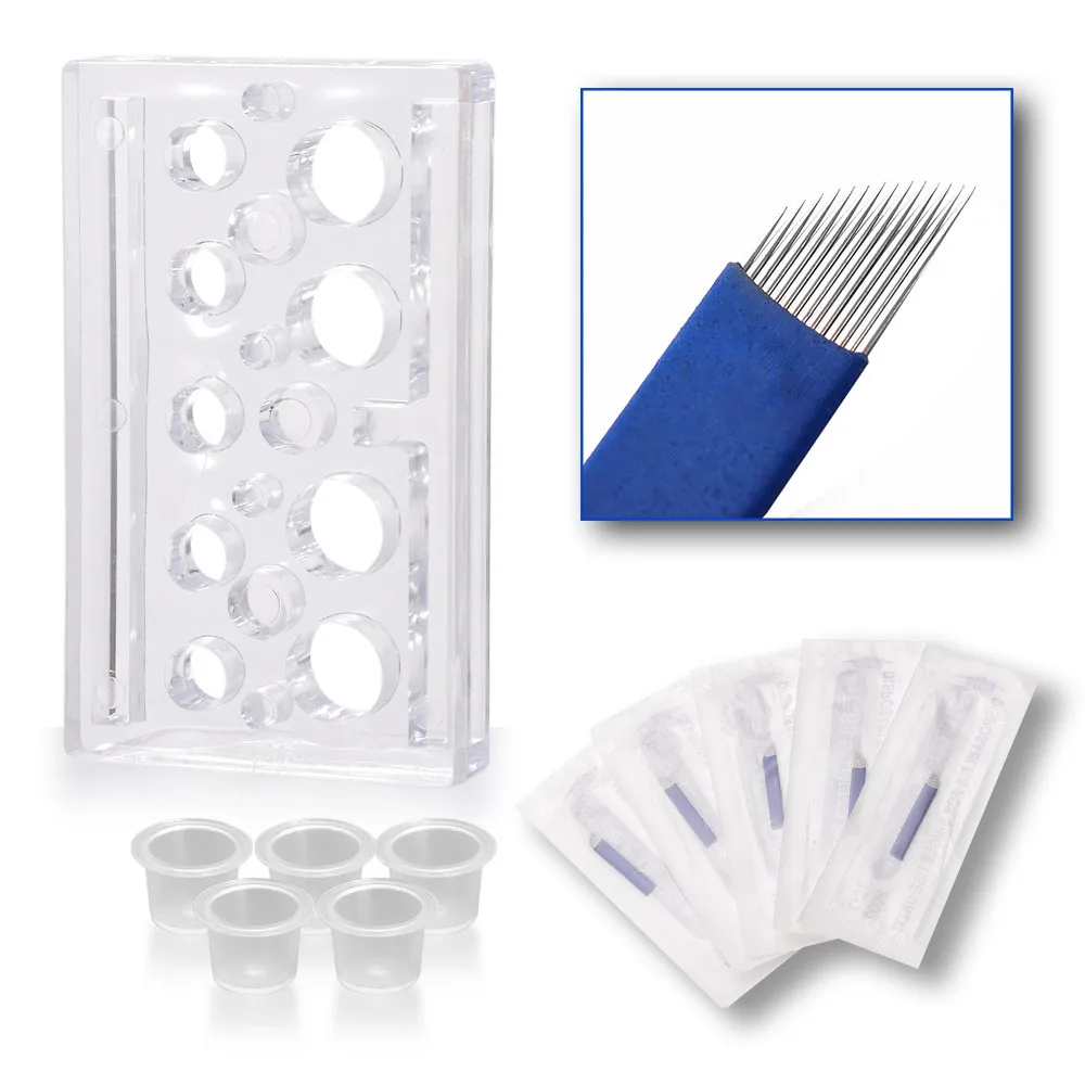 Check Price ATOMUS 1 Set Practical Makeup Microblading Eyebrow Tattoo Ink Cup Holder Kits Pen Needle Skin Ruler Promo Offer as cheap as US $10.39